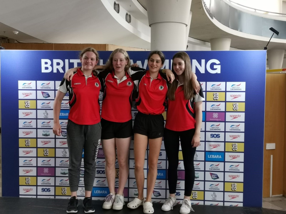 Then the Girls 14-16years-old 4x100Free Relay competed and again moved up the table finishing 13th nearly making the final this a time. The team finish in a time 4.04.79, 0.9 outside the final Tegan Gale 1.01.43, Rita Luzan 1.01.32, Sadie Warmington 1.01.80, Sophie King 1.00.24. This was Rita’s first swim at British Champs.